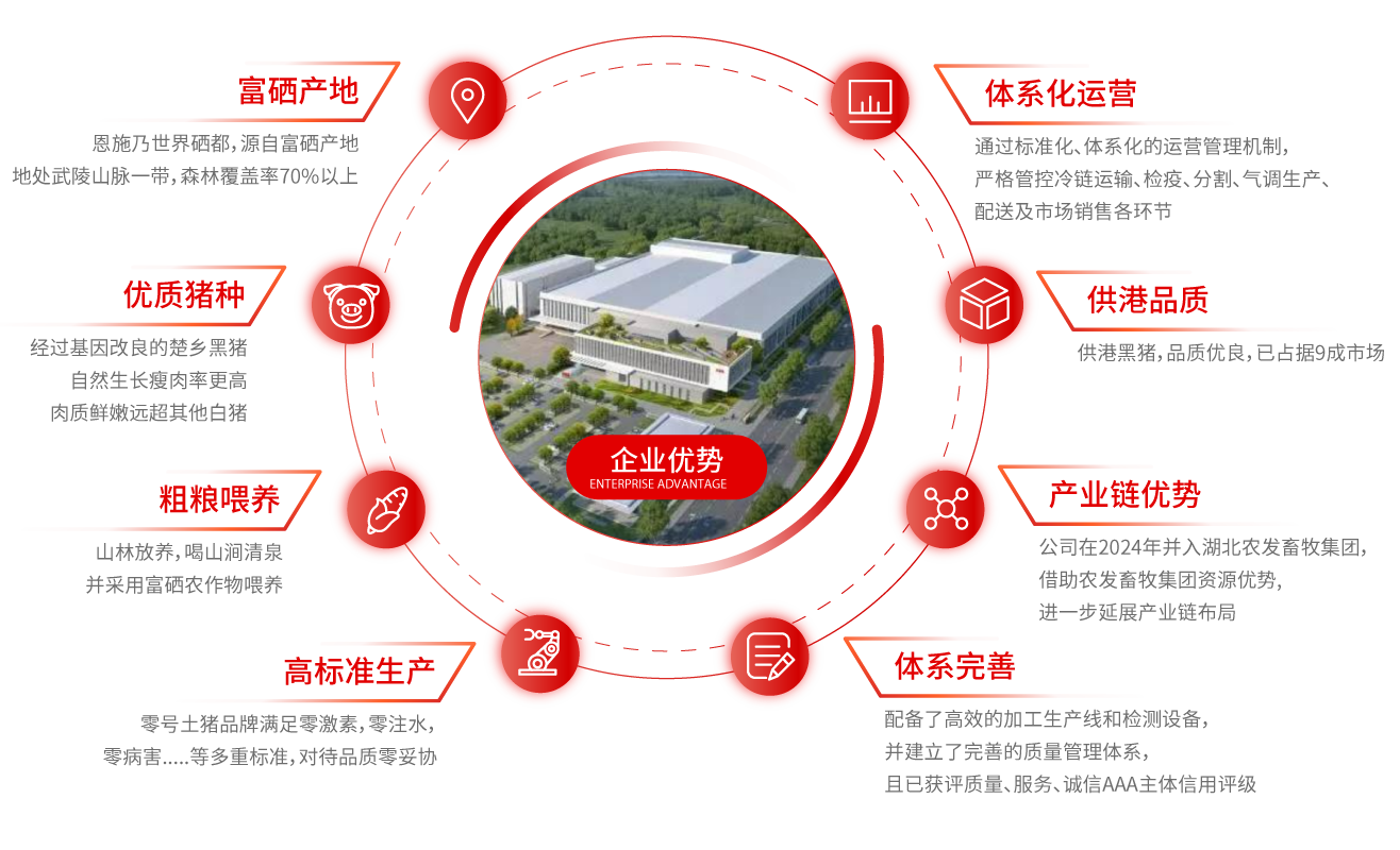 農發零號公司專注于恩施地域特色農產品的開發與銷售,利用當地得天獨厚的自然資源,打造高品質肉食產品。公司旗下主導運營的“零號土豬”品牌,自2009年創立以來,憑借其產業鏈資源優勢和優質的品質,已成為行業暢銷品牌,并榮獲“中國著名商標”。此外,公司還推出了“零號牛牛”、“沃圖年豬”、“酉水黑豬”“酉水烏雞”、“山清美肴”、“知木每”、“沃圖小鮮”和“零零鹵”等多個細分市場品牌,產品行銷至全國20多個省、市及自治區,滿足了不同消費者的多樣化需求。>>>